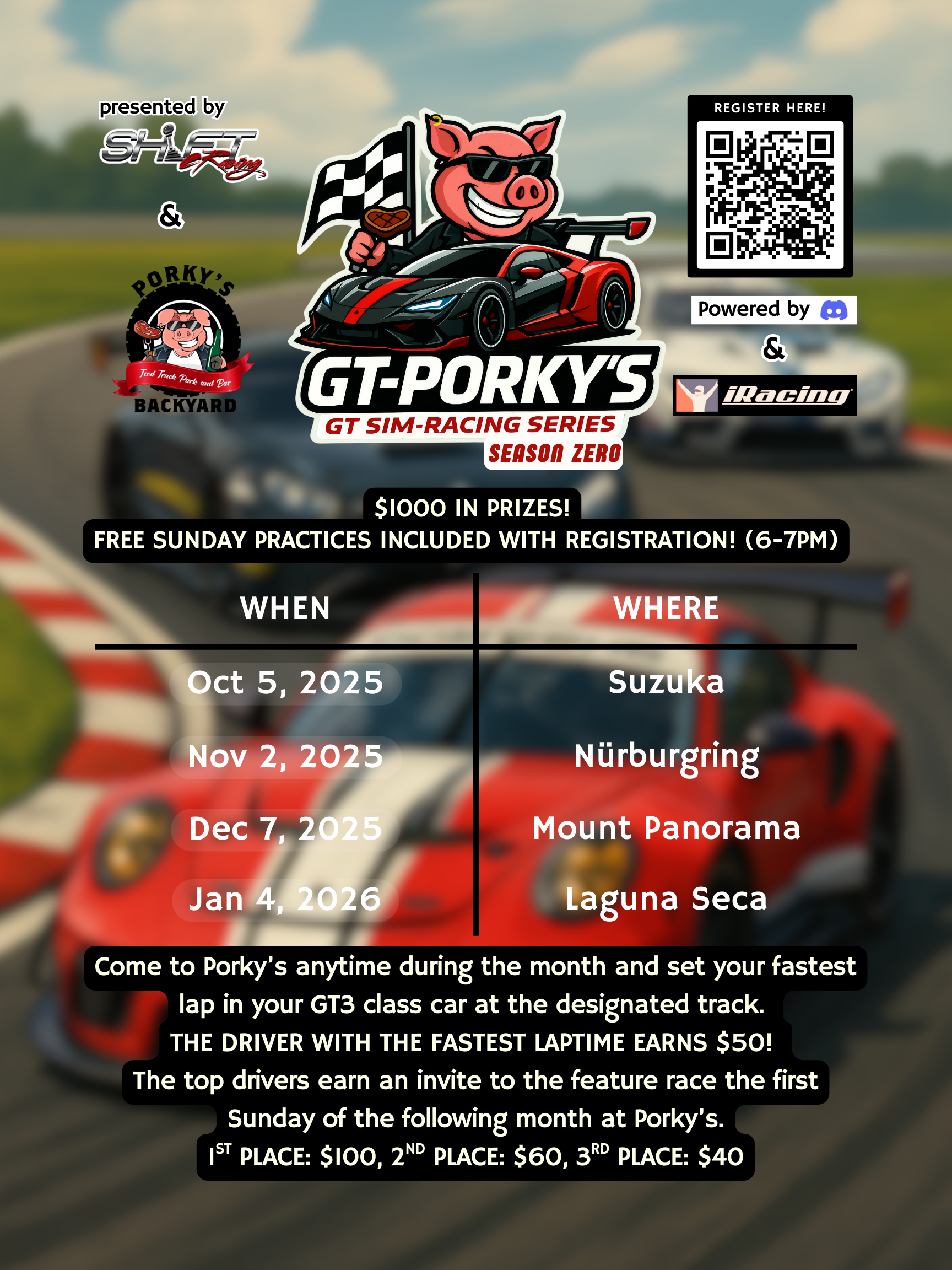 Shop Categories: All Merch Events Shop All | Merch | Events | 1 RACE PASS (FUNDAMENTAL CUP: SEASON ZERO) $3.00 Oschersleben GP Navarra (Speed) Lime Rock GP Summit Point (Jefferson) Tsukuba (2000) Lédenon Oulton (Fosters) Charlotte (Roval 2025) Winton (National) Okayama (Full) Summit Point Add To Cart Added! SEASON PASS (FUNDAMENTAL CUP: SEASON ZERO) $20.00 Add To Cart Added! SEASON PASS (ROADMASTER: SEASON ZERO) $15.00 ALL RACES (SAVE $5) Added! 1 RACE PASS (GT-PORKYS: SEASON ZERO) $5.00 Suzuka Nurburgring Mount Panorama Laguna Seca ONE RACE Added! 1 RACE PASS (BAYOU CITY CUP: SEASON ZERO) $2.00 GT3@Barcelona F4@Road Atlanta GT3@Silverstone Next Gen@Daytona GT3@Imola Dirt Street Stock@Bristol GT3@Nürburgring F4@Laguna Seca GT3@Suzuka Next Gen@Charlotte GT3@Road America Dirt Street Stock@Limaland GT3@Daytona F4@Watkins Glen GT3@Watkins Glen Pro 2 Lite@Wild West GT3@Spa F4@Spa Add To Cart Added! SEASON PASS (BAYOU CITY CUP: SEASON ZERO) $20.00 Add To Cart Added! SHiFT BUMPER STICKER $10.00 Add To Cart Added! SHiFT WINDOW DECAL $15.00 Add To Cart Added! 1 RACE PASS (ROADMASTER: SEASON ZERO) $5.00 Canadian Tire Motorsport Park Road America Virginia International Raceway Circuit of the Americas ONE RACE Added! SEASON PASS (GT-PORKYS: SEASON ZERO) $15.00 ALL RACES (SAVE $5) Added! SHiFT eRacing Unisex organic cotton t-shirt from $23.50 Select Size S M L XL 2XL 3XL 4XL 5XL Add To Cart Added!